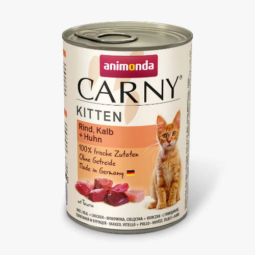 Animonda Carny Kitten Kalb,Huhn, Pute - konzerv (borjú,csirke,pulyka) kölyök macskák részére (400g)