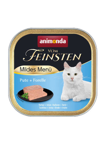 A Vom Feinsten Adult Mildes Menu a kiegyensúlyozott, ízletes, egészséges táplálkozást jelenti a legmagasabb szinten 1 és 6 éves kor közötti felnőtt macskák számára. A kizárólag jól emészthető pulykahúsból készült ízletes receptek - belsőségek és máj nélkül - különleges élvezetet kínálnak a macskáknak. A finomra vágott piték minden szükséges tápanyagot biztosítanak a felnőtt macskának.