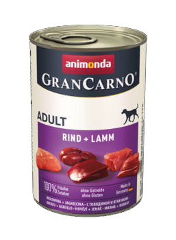 A kutya köztudottan a farkas leszármazottja. Tizenötezer emberek oldalán töltött év alatt a kutyák jelleme és kinézete rendkívüli változáson ment keresztül. Ezzel ellentétben a táplálkozási szokásaik és igényük a friss állati eredetű nyersanyagokra változatlan maradt. A GranCarno kutyaeledel kizárólag friss húsfélékből készül, mint a szív, tüdő, színhús és máj. Minden termék a legkorszerűbb tudományos ismereteket felhasználva készült, figyelembe véve a különböző kutyafajtákat és igényeket, megfelelően táplálva a kutyákat: természetesen, tisztán, mesterséges színezékek, ízesítők és tartósítószerek nélkül. A GranCarno Adult természetes, kutyáknak készült táplálék felnőtt kutyák számára, kiegészítve létfontosságú ásványi anyagokkal és vitaminokkal.