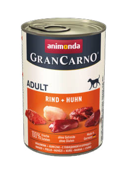 A kutya köztudottan a farkas leszármazottja. Tizenötezer emberek oldalán töltött év alatt a kutyák jelleme és kinézete rendkívüli változáson ment keresztül. Ezzel ellentétben a táplálkozási szokásaik és igényük a friss állati eredetű nyersanyagokra változatlan maradt. A GranCarno kutyaeledel kizárólag friss húsfélékből készül, mint a szív, tüdő, színhús és máj. Minden termék a legkorszerűbb tudományos ismereteket felhasználva készült, figyelembe véve a különböző kutyafajtákat és igényeket, megfelelően táplálva a kutyákat: természetesen, tisztán, mesterséges színezékek, ízesítők és tartósítószerek nélkül. A GranCarno Adult természetes, kutyáknak készült táplálék felnőtt kutyák számára, kiegészítve létfontosságú ásványi anyagokkal és vitaminokkal.