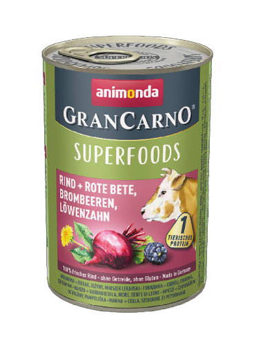 Animonda GranCarno Adult (superfood) konzerv - Felnőtt kutyák részére,marha,cékla,szeder,pitypang (400g)
