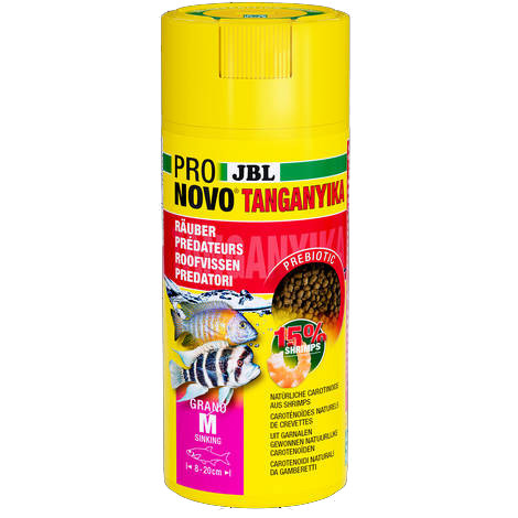 JBL ProNovo Tanganyika Grano "M" CLICK - 8-20 cm-es akváriumi alaptápgranulátum ragadozó sügérek számára (250ml/149g)