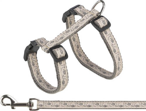 KT25.Trixie Cat Harness with Lead - hám és póráz szett (szürke/bézs színben) macskák részére (27–45 cm/13 mm, 1.20 m)