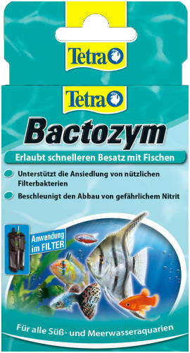 A Tetra Bactozym gyors bioaktivitást biztosít az akváriumban. A természetes szerves kolloidok láthatatlan filmréteget hoznak létre a szűrőanyagon és minden felületen, elősegítve ezzel a hasznos szűrőbaktériumok megtelepedését. Ez azt jelenti, hogy az első halak már 24 órával az új beállítás után telepíthetők. A víz- és szűrőcsere a bioaktivitás komoly vesztesége nélkül elvégezhető.