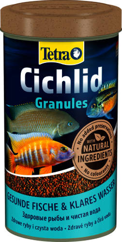 - két különböző granulátum keveréke biztosítja kisebb cichlidek kiegyensúlyozott étrendjét