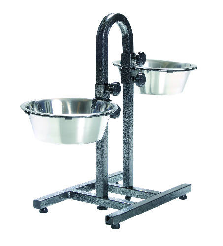 A kalapácslakkal borított állvány formájának és gumitalpainak hála csak nehezen csúszik vagy mozdul el. A tálak magassága külön-külön is állítható, beillesztésük, kivételük egyszerű.