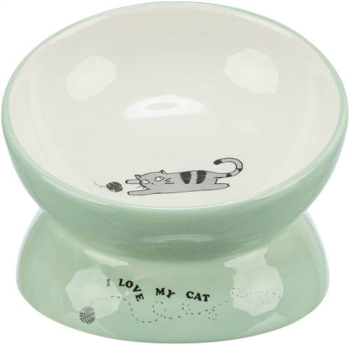 Kerámia tál macskák részére - 0,15 L, 13 cm, zsálya-fehér színben, cikkszám: 24470