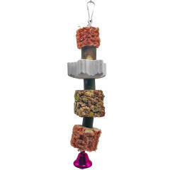 Trópus - játék (csőrkoptatóval, csemegekockával és csengővel) díszmadarak részére (17cm)