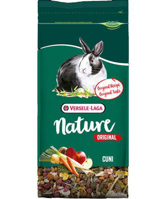 A Nature Original Cuni egy teljesértékű eledel a felnőtt (törpe)nyulaknak kifejlesztve. Ez az ízletes összetevőkből álló prémium keverék minden nélkülözhetetlen tápanyagot, vitaminokat és ásványi anyagokat tartalmaz, melyek kedvence gondtalan, vitalitással teli életéhez szükségesek. A keverékben található rostok, gyógynövények, zöldségek és gyümölcsök biztosítják a kiváló emésztést, jó fogápolást, fényes bundát és a tökéletes egészséget.Az alapanyagok széles választéka biztosítja az ízletességet és a jó táplálékfelvételt. Ez teszi a Nature Original-t kiváló választássá nyula mindennapi kényeztetésére!