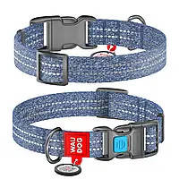 WAUDOG Re-cotton, Reflective Dog collar (M) - nyakörv, újrahasznosított pamutból (QR kódos, fényvisszaverő csíkkal, kék) kutyák részére (28-40cm/20mm)