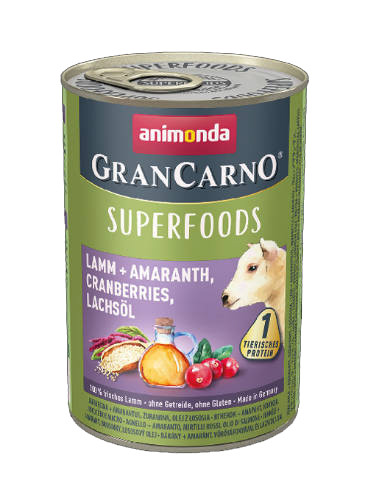 Animonda GranCarno Adult (superfood) konzerv - Felnőtt kutyák részére, bárány, amaránt, áfonya, lazacolaj (400g)