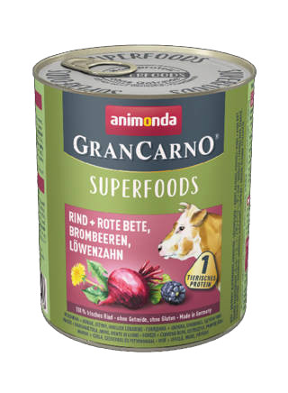 Animonda GranCarno Adult (superfood) konzerv - Felnőtt kutyák részére, -marha,cukorrépa,szeder,pitypang (800g)