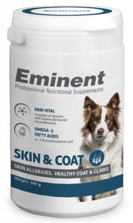 Készítmény kutyáknak az egészséges bőr, szőrzet és karmok erősítésére.