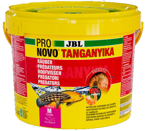 JBL ProNovo Tanganyika Flakes "M" - 8-20 cm-es akváriumi alaptáppehely ragadozó sügéreknek (5,5l/950g)(KIZÁRÓLAG RENDELÉSRE!)