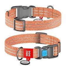 WAUDOG Re-cotton, Reflective Dog collar (M) - nyakörv, újrahasznosított pamutból (QR kódos, fényvisszaverő csíkkal, narancssárga) kutyák részére (28-40cm/20mm)