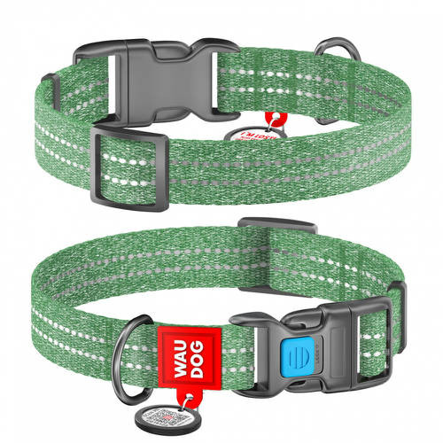 WAUDOG nyakörv, QR kódos, műanyag gyorscsattal,újrahasznosított pamutból ( 25mm, 35-58cm) zöld