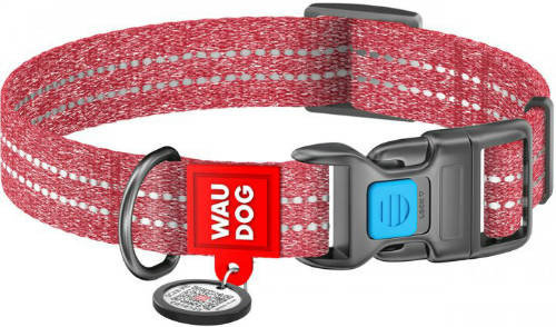 WAUDOG nyakörv, QR kódos, műanyag gyorscsattal,újrahasznosított pamutból ( 25mm, 35-58cm) piros