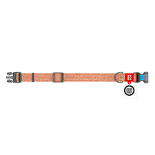 WAUDOG Re-cotton, Reflective Dog collar (XL) - nyakörv, újrahasznosított pamutból (QR kódos, fényvisszaverő csíkkal, narancssárga) kutyák részére (37-58cm/25mm)