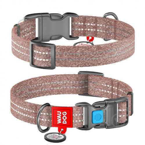 WAUDOG Re-cotton, Reflective Dog collar (XL) - nyakörv, újrahasznosított pamutból (QR kódos, fényvisszaverő csíkkal, barna) kutyák részére (37-58cm/25mm)