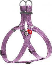 WAUDOG (M) - hám újrahasznosított pamutból (QR kódos, fényvisszaverő csíkkal, lila) kutyák részére (50-80cm/20mm)